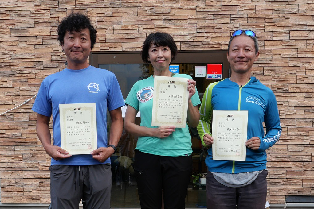 そのまま山頂からファイナルを切った能祖が、1時間35分でトップゴール。8分遅れで下野、小林、さらに8分後に佐藤と続いた。